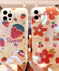 Compatible with Apple , Strawberry Floret Silicone Mobile Phone Anti Drop Case