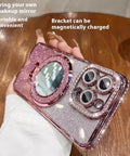 Makeup Mirror Bracket Phone Case Glitter Protective Cover