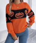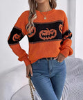 Halloween Pumpkin Pullover Sweater Fashion Long Sleeve Knitted Tops For Women Clothing