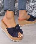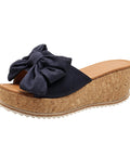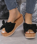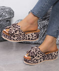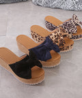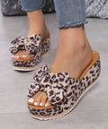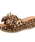 Fashion Bow Leopard Print Wedge Slippers For Women New Thick-sole High Heel Flat Shoes Summer Outdoor Fish Mouth Slippers
