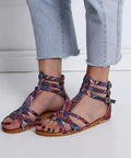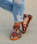 Ladies Ethnic Style Buckle Flat Roman Sandals