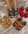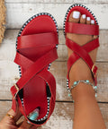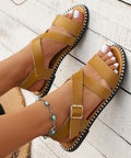 New Buckle Roman Sandals Summer Fashion One-line Cross-strap Design Beach Shoes For Women Low Heel Flat Slides Slippers