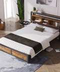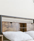 • Stauraum-Kopfteil:Das Nachttisch ist mit Ablagefächern mit Holzmaserung ausgestattet, in denen Bücher, Mobiltelefone und andere kleine Gegenstände bequem aufbewahrt werden können, wodurch der Stauraum im Raum vergrößert wird. Außerdem gibt es über dem Kopfteil zwei Ebenen für die Aufbewahrung von Sammlungen.