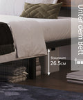 • Unter-Bett-Stauraum:Die Bodenfreiheit dieses Bettes beträgt 26,5 cm, sodass Sie einige Aufbewahrungsboxen frei platzieren können, um saisonale Kleidung und Schuhe aufzubewahren. Gleichzeitig ist der Bodenraum frei und lässt sich leicht reinigen und Staub entfernen, was die Sanitärreinigung im täglichen Leben erheblich erleichtert.