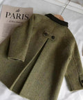 Children's Retro Army Green Woolen Coat Mid-length Woolen Coat