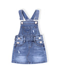Stretch Ripped Denim Slip Dress For Baby Girls