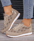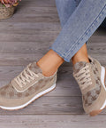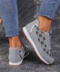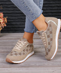 Flower Print Lace-up Sneakers Casual Fashion Lightweight Breathable Walking Running Sports Shoes Women Flats