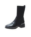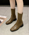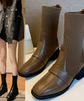 British Style Square Toe Mid-tube Knitted Martin Boots Women
