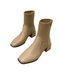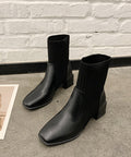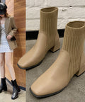 New Personality Niche Square Toe Thick Heel Socks Boots Female Ins Trend