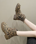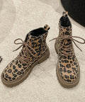 Plus Size Martin Boots Thick Bottom Leopard Print Lace-up