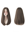Mid-point Wig, Female Long Hair, Long Straight Hair, Net red, Mid-length Hair, Natural Face Trimming, No Bangs, Korean Style Full Headgear