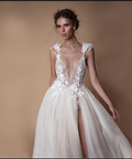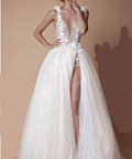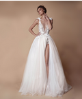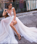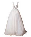 Angel Wedding Dress, Diamond Lace Collar, High Slit Bridal Tail, Open Back Light Wedding Dress