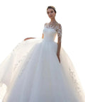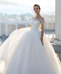 Bridal Mesh Long Sleeve Embroidered Wedding Dress