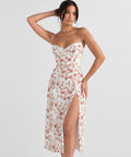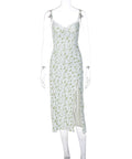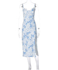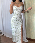 Lace Flowers Print Long Dress Sexy Fashion Slit Suspender Dress Summer Women's Clothing