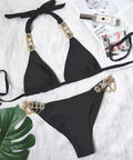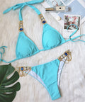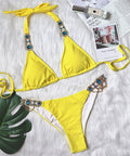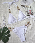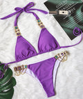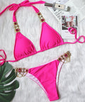 New Sexy Purple Halter Crystal Diamond Bikini Female Swimsuit Women Swimwear Rhinestone Bikini