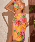 Printed Split Swimsuit Female Skirt Style Split Bikini Three-piece Suit