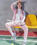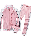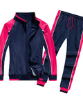 Amazon Autumn And Winter New Ladies Sports Suit Texture Thread Stand Collar Fashion Color Matching Two-Piece Zipper Cardigan
