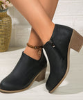 Chunky Heel Round Toe Ankle Boots With Side Zipper Design Fashion Fall Winter Short Boots For Women Shoes