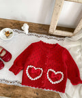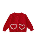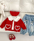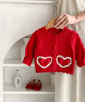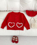 Girl's Red Love Lace Bow Knitted Coat