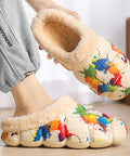 Home Indoor Platform Fleece-lined Contrast Color Cotton Slippers