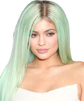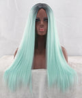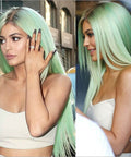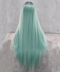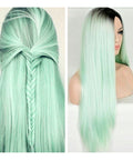 Mint Green Wig, Long Straight Hair, Black And Green Dyed Gradient Chemical Fiber Headgear