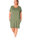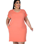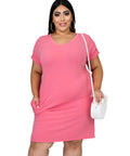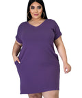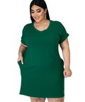 New Solid Color Dress V-neck Plus Size Women's Fat MM Short Sleeves