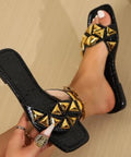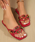 Plus Size Women's Slippers Outdoor All-matching Studded Square Toe Flat Bottom Sandals