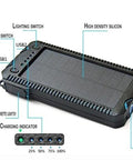 The light shows: the first indicator is the solar charging indicator, and the remaining 4 are the battery indicator.