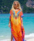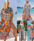 Rayon Printed Robe Seaside Holiday Sun Protection Shirt Beach Dress Bikini
