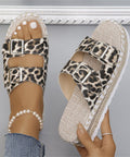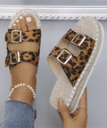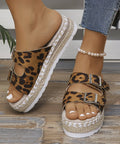 Summer Double Buckle Leopard Print Flat Sandals Hemp Thick-soled Sandals Seaside Vacation Beach Shoes For Women