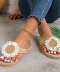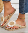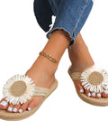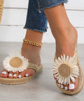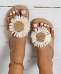 Summer New Fashion Women's Linen Fashion Simple Flower Flat Casual Sandals