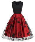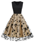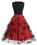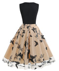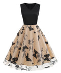 V-neck Sleeveless Mesh Butterfly Patchwork Retro Dress