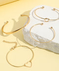 Vintage Gold Crystal Heart Letter Love Bangle Bracelet For Women Fashion Multi-layer Geometric Charm Bracelets Jewelry Gifts