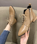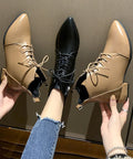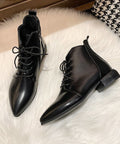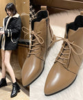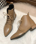 Women's Ankle Boots British Style Thick And Pointed Toe Low Heel Short Boots PU Leather Simple Comfortable