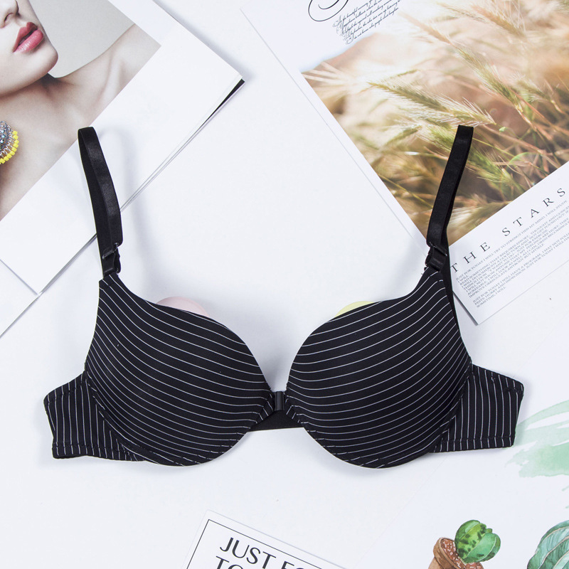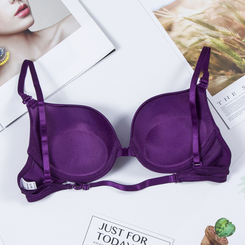 Women's Big Cup Bra Simple Push Up Concentrated Glossy Buckled Front And Shaped Back