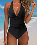 Women's Fashion Solid Color Cross Hanging Neck Swimsuit