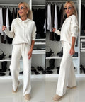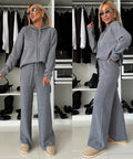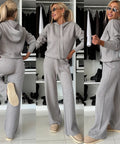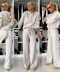 Women's Solid Color Hooded Long Sleeved Sweatshirt Wide Leg Pants Set